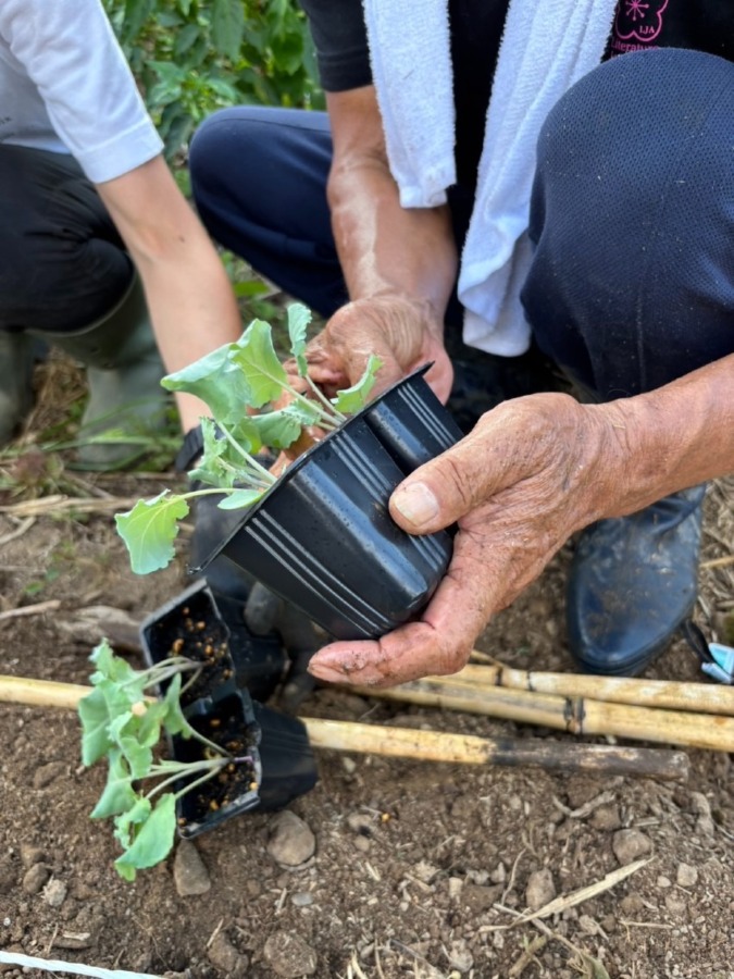 今朝,波佐見施術所の畑に,プチベールを植えました。